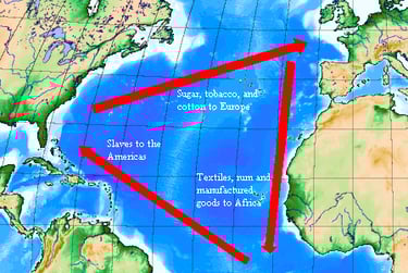 Karayiplerden alınan raw materiallar avrupaya işlenmeye gitti. bunun adı triangular trade. afrikadan çıkan slaveler karabiana çalışmaya gidiyor. işledikleri raw materiallar avrupaya işlenmeye gidiyor.