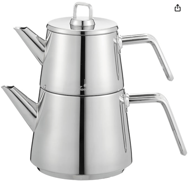The essential tool for brewing tea is the çaydanlık, a double-stacked teapot. We don’t know exactly who invented it, but its practicality is undeniable: the bottom part boils water, while the top is used for steeping the tea. The word dem comes from Arabic, meaning “blood,” and from Persian, meaning “breath” or “time.” Turks call perfectly brewed tea tavşan kanı(“rabbit’s blood”), so the “blood” meaning makes sense too.